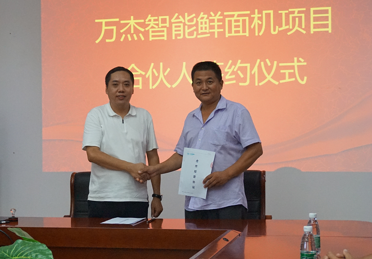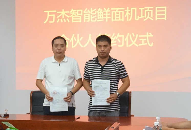 2017年8月4日,萬杰智能總部又迎來山東省兩位合作伙伴,山東省泰安市華任經(jīng)貿(mào)有限公司劉總、山東省曲阜市鑫海商貿(mào)有限公司楊總分別與萬杰智能簽署了《智能鮮面機合伙人合作協(xié)議》。 此次,泰安、曲阜兩市的加入,標志著萬杰智能鮮面機項目山東市場正式開啟。至此,萬杰智能鮮面機全國招商突飛猛進,赤峰、新鄉(xiāng)、鄭州兩個區(qū)域、鶴壁、寧波、義烏、溫州、洛陽、大慶、許昌禹州市、泰安、曲阜相繼加入,全國招商工作屢獲佳績。 萬杰智能董事長王曉杰與山東省泰安市華任經(jīng)貿(mào)有限公司劉總 萬杰智能董事長王曉杰與山東省曲阜市鑫海商貿(mào)有限公司楊總 山東省是我國面食大省,尤以打鹵面最為著名和正宗,現(xiàn)制鮮面條的出現(xiàn),將會為當?shù)匕傩彰媸成畹?/font>“安全、健康、營養(yǎng)”創(chuàng)造了更多可能。 得益于主食安全和模式創(chuàng)新,萬杰智能聚集了全國各地的事業(yè)合作伙伴,各個城市的合伙人與萬杰智能共同扛起“主食安全”的大旗。可以說,獲得收益,充其量只是門生意,而造福百姓,然后讓所有參與者共同受益,這才可稱得上是一份事業(yè)。萬杰智能鮮面機項目的合伙人正是這樣一支隊伍,做主食安全,為一方百姓,這份既有擔當,又前景可觀的事業(yè),誠邀全國地區(qū)意向合作伙伴。 萬杰智能主食機械——為億萬家庭主食安全服務!