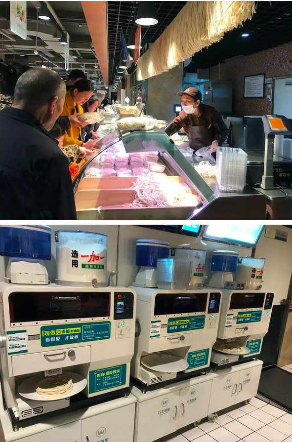 2016年下半年,許昌市作為樣板市場,正式開始鋪設鮮面機,不知不覺,已快3年,目前許昌市大范圍鋪設鮮面機,樣板市場從創立到發展至今逐漸成熟,經過了一段創新實踐的探索之路。 從進駐雜面館到制作出的雜面條成為餐桌上的美味,從入駐胖東來等知名商超到被眾多老百姓熟知并認可,從傳統渠道的深耕再到打破常規,入駐中原銀行,為全國的客戶與合作伙伴提供更多可借鑒的發展新思路。許昌市越來越多的老百姓,已經習慣了鮮面機的陪伴,甚至,有些依賴。 這期間,有思考也有收獲。現如今,就智能鮮面機許昌市場的發展最新進展總結如下,希望與朋友們分享、共勉,能為朋友們帶來更多的借鑒。 一、 面館寵兒,省人工,配比好掌控。 在許昌有很多只賣雜面條的餐館,店里以主打雜面條為主,這類餐館就因為賣這種雜面條備受歡迎。而且,雜面條既美味又營養,逐漸被越來越多的消費者認可。其中,許昌的野菜黑豆面和琛晟客來香雜面館是兩個新開業不久的雜面館。店老板表示,之所以選用智能鮮面機,一方面,可以有效的節省人工,降低成本;另一方面,雜面條的配比很重要,智能鮮面機現吃現做,可以輕松的調制面條和雜糧的比例,有效的保障面條的口感。此外,面條吃多少做多少,沒有浪費,為他們解決了做面的大難題。 值得一提的是,在琛晟客來香雜面館擺放了兩臺智能鮮面機設備。一臺擺放在一樓的進門處,可以與消費者面對面實現互動溝通,有效的聚集了人氣。另一臺則擺在后廚擔當起重任。兩臺智能鮮面機設備同時工作,成為店中不可或缺的“關鍵人物”。 二、 現制面條逐漸在商超店中成為流行。